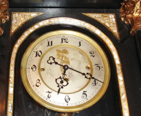 Austrian, bench made, 3-weight "Vienna Regulator" in an ebonized case with mother of pearl and brass inlay, serial # 65831, c1895
