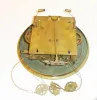 Austrian, bench made, 3-weight "Vienna Regulator" in an ebonized case with mother of pearl and brass inlay, serial # 65831, c1895 there are some scrapes on the ebonizing, and some corner wear commensurate with the age of this item. Well made movement is complete and sound, and still with strike shut off intact. Pulleys match. Art Nouveau decorations applied to dial center, pendulum and weights, not an exact match, but of the same style. Impressive, and all of the inlay is intact. Note the case will need a new rear hanger for safety.. Ht: 57"