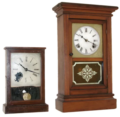 Clocks- 2 (Two): Waterbury Clock Co., Waterbury, Conn.8 days, spring driven time and strike, shelf clock, c1870. The second is a Henry Sperry, NYC, 30 hours, timepiece spring driven cottage clock, c 1850.