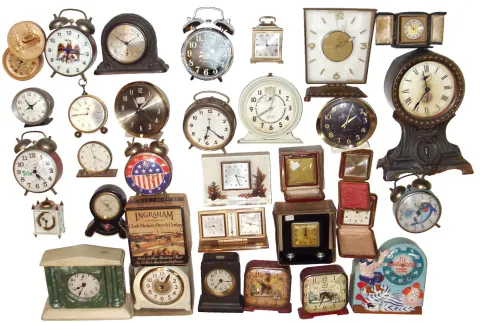 Clocks- 33 (Thirty-three) Alarm wind-ups, American and Swiss