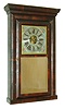 E. C. Brewster & Co., Bristol, Conn. cornice top case with spring driven 30 hours, time and strike, movement with iron back plate c1843. The rosewood case retains some original finish. The door has some veneer repairs and some missing veneer. The dial is original with some loss to the silvered and painted areas. The hands are original. The upper glass and lower mirror are original. There is a nice E. C. Brewster card inside the case. Ht 24".