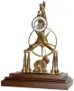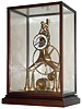 Skeleton Clock, modern Asian lacquered brass reproduction, in glass and wood case, late 20th century