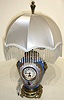 the lamp and shade are in very nice condition, as is the brass bezel, beveled glass. and signed porcelain dial with multicolor garlands. Clock and lam...