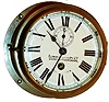 English engine room clock, nickel plated brass case with beveled glass, Roman numeral white enamel dial marked "Fleming & Ferguson Shipbuilders & Engineers Paisley" (Scotland), blued steel hands, round 8 days, fusee timepiece with lever platform, the