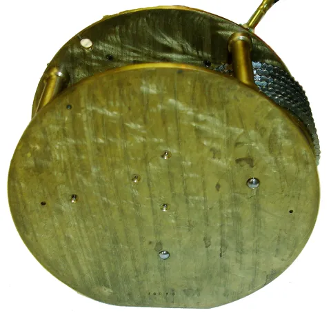 case dirty and with minor losses to plating, minor dings and scratches, left side with waves from removed dent, glass with minor scratches, dial with minor scratches, movement very oily, starts immediately when wound, a cleaning wouldn't hurt, mounting flange diameter 8"