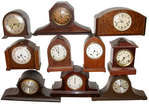 Clocks- 18 (Eighteen) 8 days, time and strike, mantel clocks, early 20th century