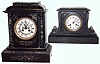 Clocks- 4 (Four) French black slate and marble 8 days, porcelain dial mantel clocks: one time only; three time and strike, late 19th century
