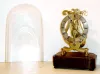 This is a robust but modest quality clock, that has main wheels, each with 4 tapered spokes, and the side motion gears are solid with no spokes. There was perhaps a chain to the fusee originally, now cable. The glass dome is in good condition, and the clock ticks Ok. Ht 13"