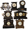 Clocks- 7 (Seven) enameled iron case American 8 days, time and strike, mantel clocks, early 20th century