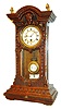 German miniature shelf clock, 8 days, time only, spring driven movement in a carved walnut case with white enamel dial and enameled R/A pendulum bob and indicator, c1875