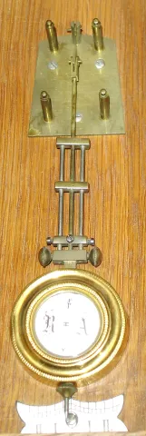 the movement retains an old finish with two replaced brass finials. The dial and pendulum bob have no hairlines. Ht...