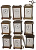 Clocks- 9 (Nine) Carriage French 8 days, one time/alarm and eight time-only; 4 cylinder platforms, 5 lever