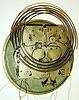 the case retains its original finish. The lower cap to which the lowest finial attaches is absent and the lower portion of the finial is absent. The left case glass is absent. The silvered chapter ring shows wear. The movement and mounting plate have matching serial #'s 103701. Ht 50"