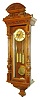 Gustav Becker, Freiburg, Germany, Vienna Regulator in the Altdeutsch style, 8 days, time and grande sonnerie strike, three weight driven movement in a carved walnut case with multicolor enamel dial and engraved brass center, matching engraved pendulum bob and weights, c1880 the case retains its original finish with typical scuffs and minor veneer splitting. The dial is excellent. There is one movement mounting post absent. The engraving is of the highest quality and the pulleys are fancy, making this a very nice example. Ht 51"