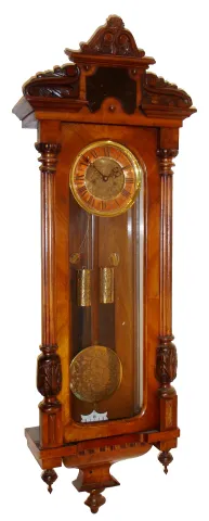 Clocks- 2 (Two) German/Austrian walnut 2 weight 8 days, time and strike, Vienna Regulator wall clocks, late 19th century