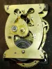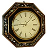 Litchfield Mfg. Co, Litchfield, Conn.8 days, paper mache with MOP octagon gallery timepiece, c1851. the case is in nice original condition with minor wear to gold border on outer edge; original painted dial with minor paint loss at center and winding arbor and outer edge of the rim with three small areas of in-painting. The brass bezel may be a replacement. This is very scarceand the largest size Litchfield wall clock model. The original hands are present including Fast / Slow setting hand. Ht 20";
