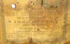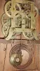Mahogany veneered case in an old finish with loss on the base, small piece missing the lower right side and a small piece on center strip between the top and bottom of the case. Dial has been repainted and is not original to the case as there are plugged holes. Hands are replacements. Bottom tablet is original with loss. Top finials have some damage. Mirror in the upper door is most likely a replacement. Dark, but readable label inside the case. Ht 26.5"