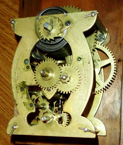 Case is in very good condition. Original dial shows some paint loss and some repainted areas. Hands are missing. Time only movement marked Litchfield Mfg. Co., Litchfield, Ct.. Ht 8.25";