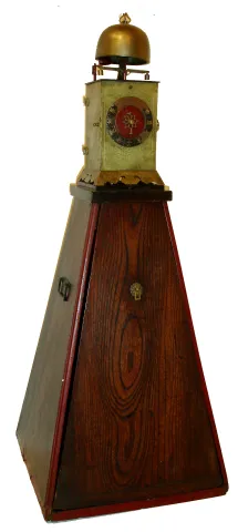 Japanese lantern clock, single foliot, on a later [but not new] pyramid base, weight driven, from the Doug Shaffer collection, c1790