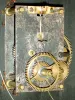 the case front, top glass and dial are in untouched original condition. The case housing the movement and dial has been repainted black. This movement does not have the typical NH wheelbarrow plates, they are rectangular and made of iron. The movement is fastened with fillister screws with nuts on the backboard. The keystone on the pendulum is very distinctive with a cutout on the inside lower left corner. Please see Charles Parsons' "New Hampshire Clocks & Clockmakers" page 195 for this specific clock. Additionally, this actual clock was illustrated on p. 43 in the book "Clocks" written by Doug Shaffer for the Smithsonian Illustrated Library of Antiques, 1980 Ht 30"