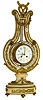 France, lyre clock, white marble case with molded base decorated with gilt trim and foliate ornament, the lyre with acanthus, floral garlands, beaded trim, and a large festoon of fruits and flowers, the top with wreath, torch, and quiver, white enamel
