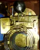 England, triple fusee bracket clock, Georgian style mahogany case with ornate gilt bronze mounts, paw feet, caryatid corners, acanthus leaf decorated base molding and door, the top with urn finials and floral swags and with central pineapple finial, the sides with large handles and pierced cast frets, composite dial with subsidiary dials at top for chime/ silent, regulation, and chime selection, blued steel hands, substantial 8 days, movement with Westminster chime on gongs or chiming on 8 bells, and counting the hours on a large gong, c1890 case very good, minor ding in top, mounts a bit dirty and with some losses to gilding, pineapple finial needs to be reattached, the block on which it rests with a repaired split, rear door with repair, dial good, minor marks and spots, dial surround with tarnish, dial center with 2 small holes below 12:00, probably for mounting a nameplate, hands with minor oxidation, movement functions correctly, would benefit from service, seat board and supporting structure with repair, replacements Ht 25 1/2"
