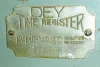 Dey Time Register, Endicott, N.Y., time recorder, 8 day twin-spring time only, Seth Thomas oversize movement, no recording mechanism, in oak case, now painted, c1910 this now is just a clock since all the time recording device has been removed. The pendulum stick is a poor remake which will not function properly. The movement appears complete but will need service. The signed dial is very good and there is also a maker's plate on the base molding Ht 35 1/2"