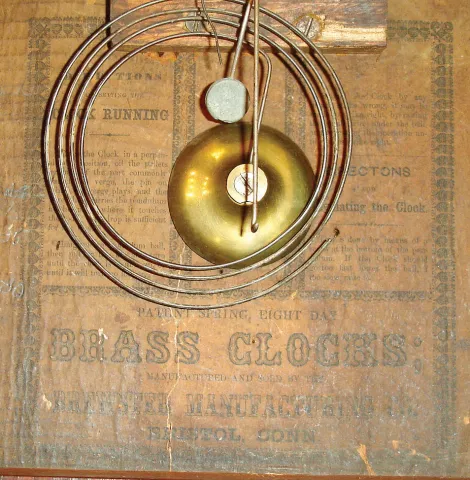 Brewster Manufacturing Co., Bristol, Conn., 8 days, time and strike, round gothic or beehive shelf clock, c1855