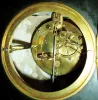 this unusual shape case, with big curved green marble front corners, is in very good condition with no flaws. The white porcelain dial and beveled glass front and back doors are fine. The pendulum number matches the movement's. Ht 8 1/2"