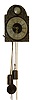 Germany, shield clock, wooden dial with velvet cover and pewter spandrels, boss, and chapter ring, pierced brass hands, wooden 30 hours, time and strike, movement, pendulum also with velvet covering and pewter ornaments, iron weights, c1860