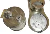 Clocks- 2 (Two): Occupied Japan moving bird in brass cage 30 hour novelty clock with annular dial, c1947; Minneapolis brass 8 day 7 jewel thermostat clock with thermometer, c1930