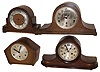 Clocks- 4 (Four) 8 day wood case mantel clocks: British Westminster-chime oak case; British time and strike oak case; German time and strike mahogany case; and German double-chime 3-train oak case, early 20th century