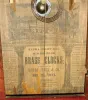 Birge, Peck & Co., Bristol, Conn large OOG shelf clock with 8 days, time and strike, weight driven brass strap movement, c1855. Mahogany case retains original but somewhat rough finish with a few veneer chips and a few veneer patches. The painted metal dial is faded and has some flaking in multiple locations. The hands are old, but may not be original. The top and bottom glasses are original with some flaking of the scene ("View of Venise") on the bottom glass. Ht 29 1/2".