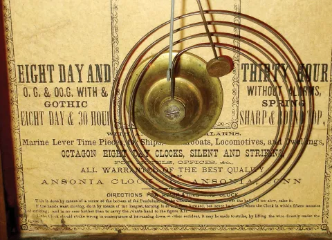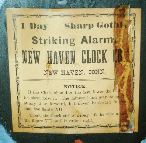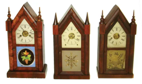 Clocks- 3 (Three): (1)Ansonia Clock Co., Ansonia, Conn., 8 days, time and strike steeple, c1855. (2)New Haven Clock Co., New Haven, Conn., 30 hours, time & alarm steeple, c1875. (3)New Haven Clock Co., New Haven, Conn., 8 days, time only, steeple, c1865.