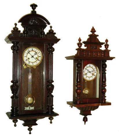 Clocks- 4 (Four) German-made clocks 8 days, time and strike, wall clocks in wood cases, early 20th century.