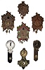 Clocks- 7 (Seven): Lux Mfg Co. Waterbury, Conn., 1-day timepieces, mid 20th century The lot consists of 4 cuckoo style novelty timepieces with composite fronts - three of them with rust on the metal movement cover. Two are small metal faced timepieces with printed on the dial: "Uncle Sam's Little Wonder" with one having a broken pendulum wire. The last is a pressed metal front with a scene printed on it. All need cleaning and service.