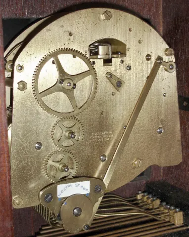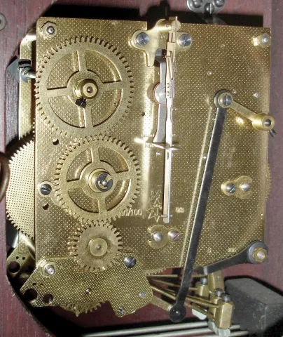Clocks- 2 (Two) Bracket mahogany 8 day 3-train chiming, F.W. Elliott, Croyden (U.K.) 7 jewel dual chime dated 1953; Junghans mid-20th century German with pendulum