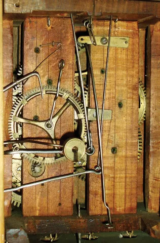 Black Forest, Germany 30 hours, walnut cuckoo weight driven wall clock with wood-plate movement, c1880