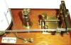 Barograph, London, England, for "Andrew J. Lloyd Co., Boston", mahogany and glass case, 8 day movement with cylinder escapement platform, c1910 the case is in very nice original condition, and there is a good old patina on the brass interior components. The movement ticks and stops, and there is a new plastic stylus on "pen" that marks weekly barometric pressure. Includes original glass ink bottle also mounted inside. Ht 7 1/2"