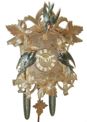 German Black Forest 30 hours, carved walnut cuckoo wall clock, c1905