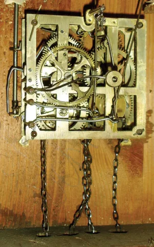 the three large red-headed carved birds are impressive, and the elaborate case appears to be complete with no damage or losses. The cast-plate moveme...