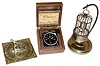 Clocks- 2 (Two) and a sundial: Longines Wittnauer boxed 8 day aircraft clock; Renco/J.Kaiser 30 hour German birdcage novelty alarm clock; plus a modern brass English sundial. 20th century