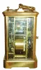 France, 8 days, time, strike & repeating on demand platform escapement carriage clock with alarm, polished Cornice case with beveled glass panels, Roman numeral white enamel dial signed by retailer "The George H. Ford Co. New Haven", Arabic numeral alarm