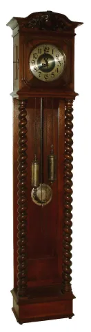 Lenzkirch, Germany, tall clock 8 days, time and strike, weight driven in open well oak case with full barley twist columns, serial # 1,917,269, c1912