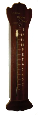 Horolovar, Germany, "Dickory, Dickory Dock" 8 days, novelty clock, c1970 this reproduction has its nice original dark finish, and the mouse is complete with his tail. The balance wheel movement seems to tick okay. Take care at home that the wall hanging nail does not extend enough into the clock to hit the balance wheel directly in front of its hole. Ht 24 1/2"