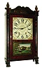 Ephraim Downs, Bristol, Conn., 30-hour, time and strike, weight driven wood movement stenciled half column & splat shelf clock with carved paw feet and pineapple finials. c1830