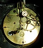Dark red marble with decent repair and now with a coat of lacquer, top marble with losses at left and right front corners, figure with restored patination, feet with gold paint, glass with minor scratches, dial with hairlines, movement ticks and strikes, bell replaced, rear mounting/retainer ring a bit small for the opening, will need attention. Although there are some cosmetic issues, the clock is in overall good condition and very impressive. Ht 31"