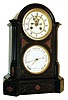 France, black slate mantel clock with barometer, case with projecting, molded base, and domed top, with griotte marble inlay and gilt, incised line decoration, Roman numeral white enamel dial with exposed Brocot escapement, blued steel Breguet hands, and