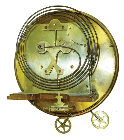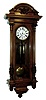 Vienna regulator, walnut and walnut veneer case with carved ornament, removable crest also with carving, door with turned and carved columns, Roman numeral white enamel dial with pierced blued steel hands, brass 8 days, time and strike, movement, 5 spoke pulleys, brass pendulum with ebonized wooden rod, brass weights, c1890 case very good, overall, and in an old finish, door lock missing, movement mounting brackets loose, case stabilizer screws missing, dial with minor scratches, hands with minor bends, pendulum good, movement ticks and strikes, dirty, weights with minor dings and tarnish, Ht 50"