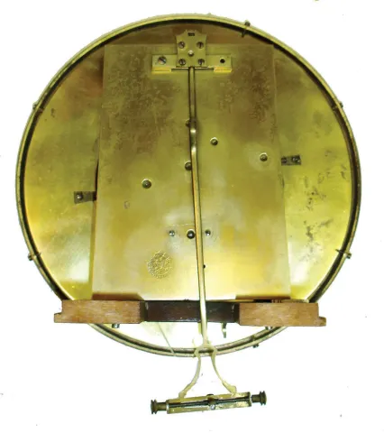 C. Suchy & Soehne, in Prague, Vienna regulator, walnut and walnut veneered case with with light wood trim around side glasses, and with string inlay in backboard, signed Roman numeral white enamel dial, pierced blued steel hands, signed brass 30 day timepiece movement, polished brass pendulum and weight, c1855 top molding replaced, door bottom rail replaced, case interior bottom replaced, drop bracket loose, and may be replaced, case refinished, one stabilizer screw missing, dial good, signature with losses, movement ticks, crutch with bend to make it a bit shorter, rear edge of seat board trimmed, movement and case may not have started life together, pendulum rod refinished, weight with minor dings, Ht 41"